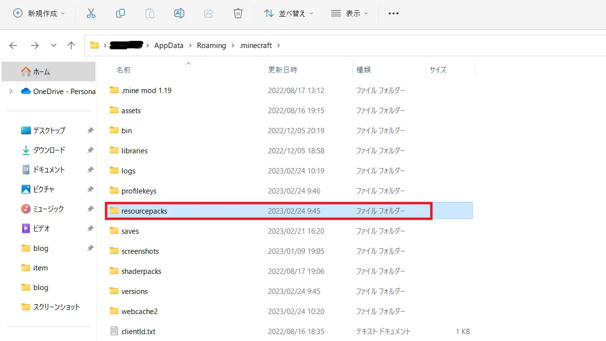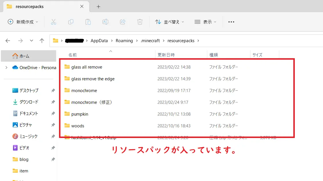 この方法は、マイクラを起動せずにリソースパックを導入したり(または削除したり)、自分でリソースパックを作成中にファイル内のデータをいじるとき等、マイクラを起動するまでもないけどリソースパックのフォルダを開きたいときに使用しています。
