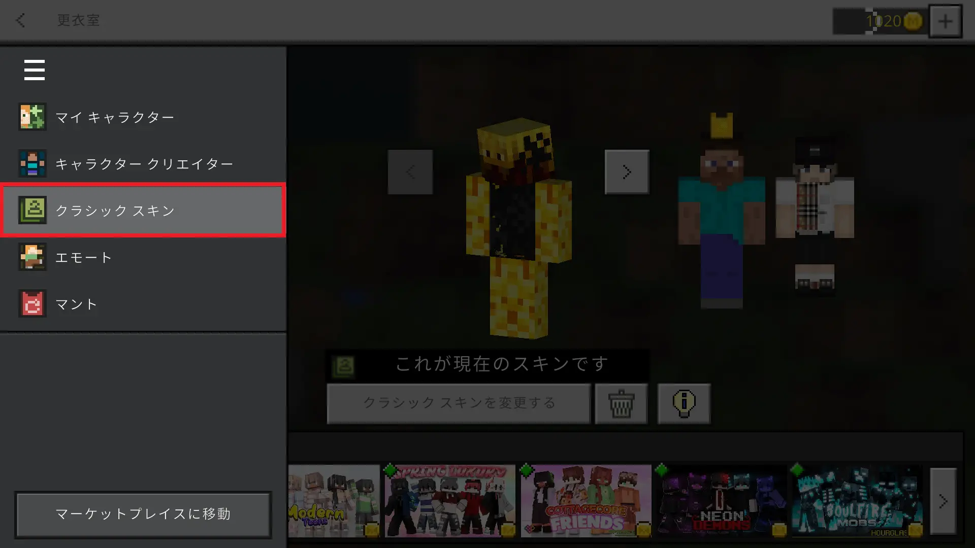 変更したいキャラクターを選択したら「クラシックスキン」を選択します。