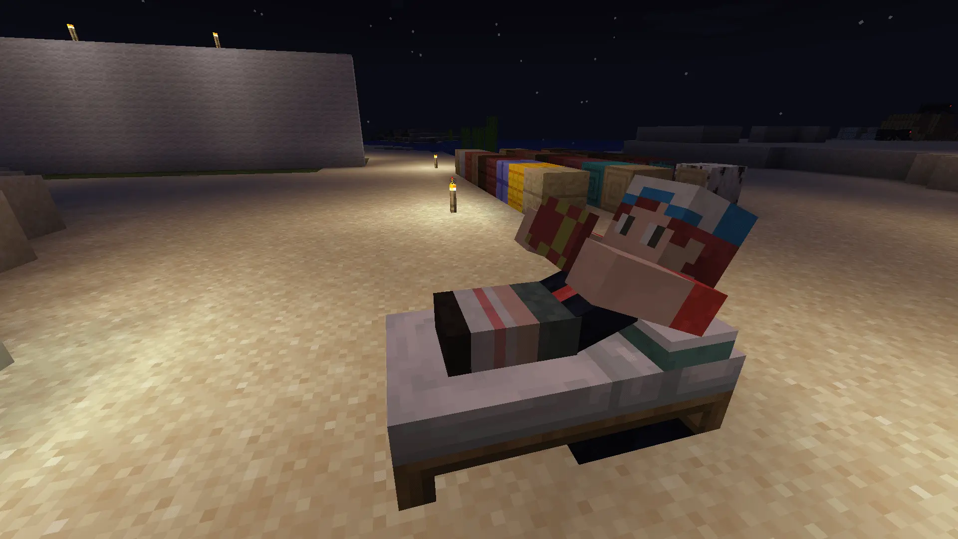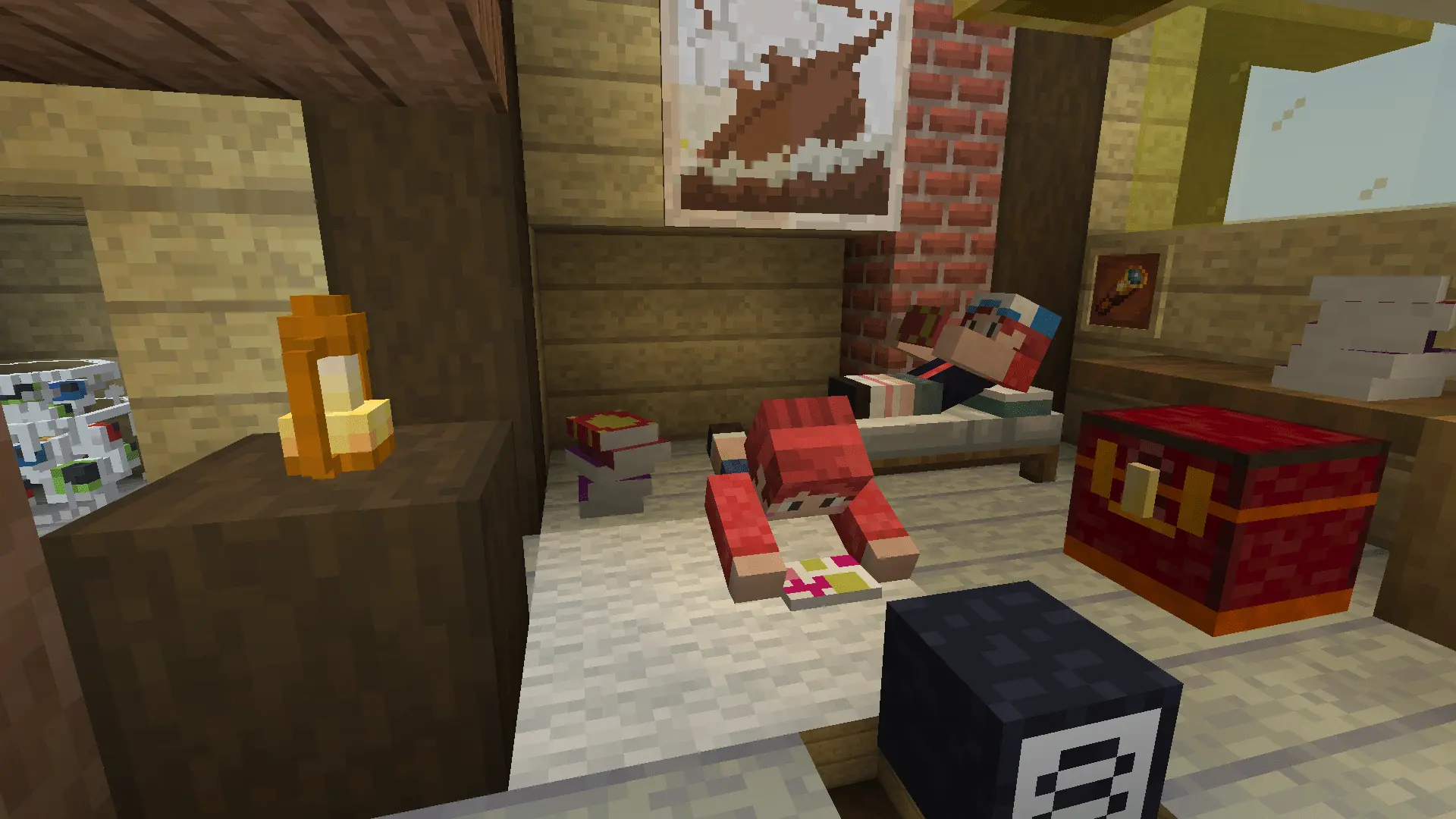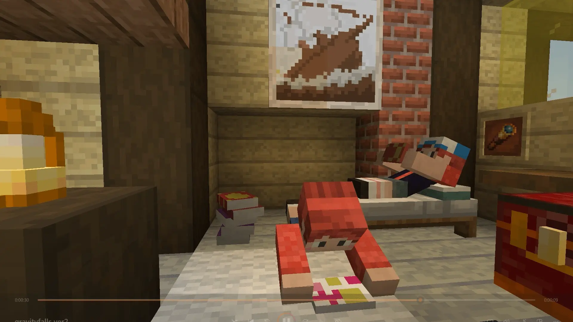 ディッパー、メイベル、ベッドの下に透明なブロックを配置しています。その他の小物は画面に映る時間ずらすために高さ調整して画面外にセットしてあります。