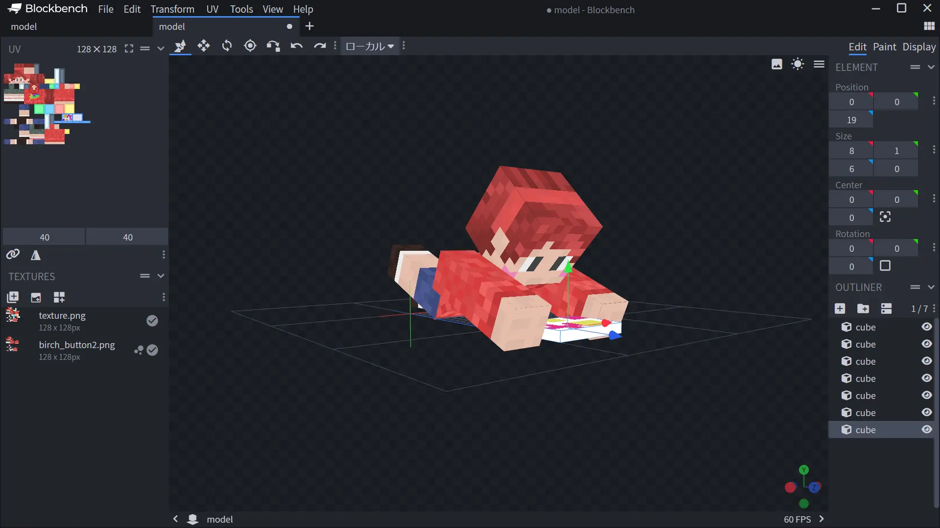 逆再生させるので落下後の状態ですね。他にもランタン、本、8ボール、旅行カバンなども作りました。