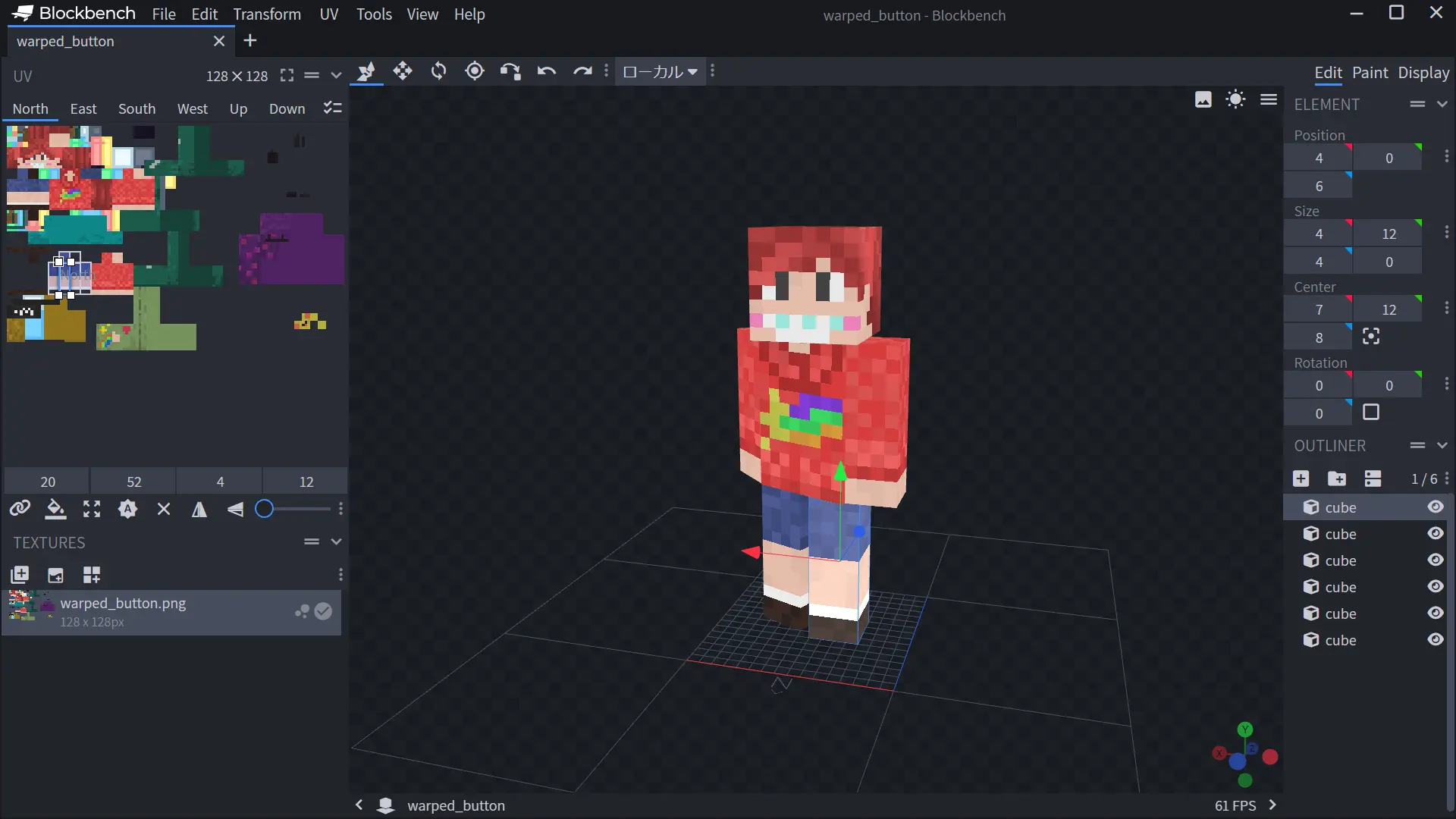 今回は、キャラクターを動かす必要がないので、全てボタンのモデルとテクスチャを置き換えて導入しています。