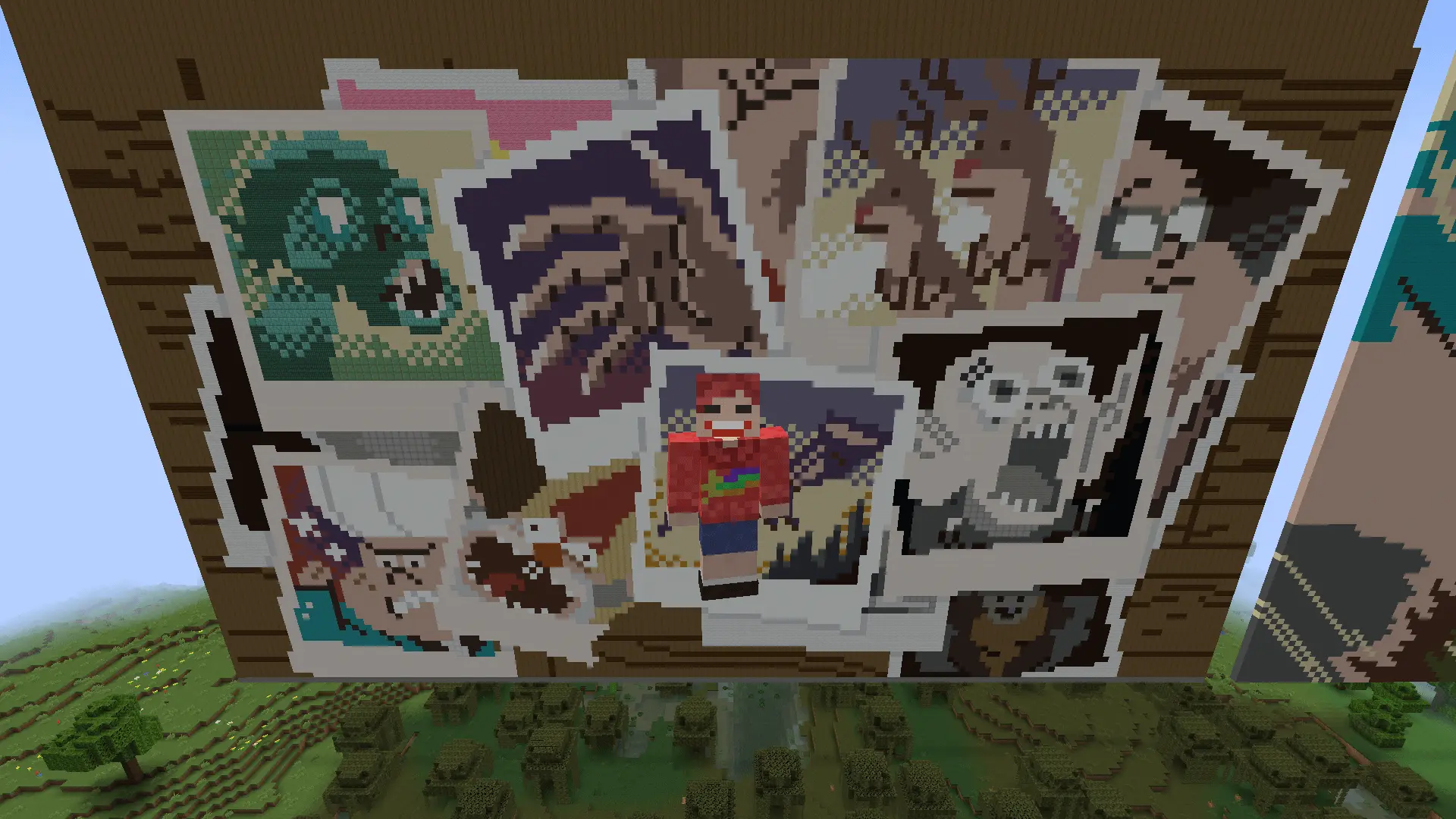 その後は、マイクラ内で10ブロックごとの枠線を作り、その中を似ている色のブロックで埋めていきました。前回ので大分慣れてきたので時間は掛かりましたが、それなりのクオリティでできました。