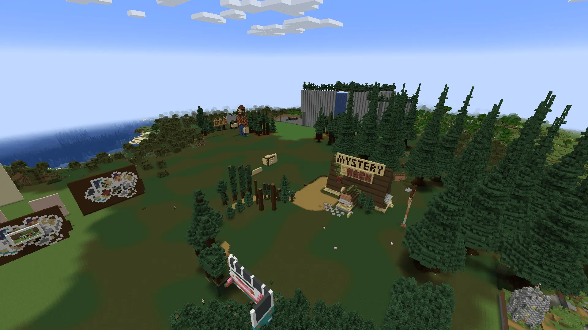背景は、実際にマイクラ内で距離を確認しながら、実際のOPの画像の写真に合わせるようにブロックを置いていきます。