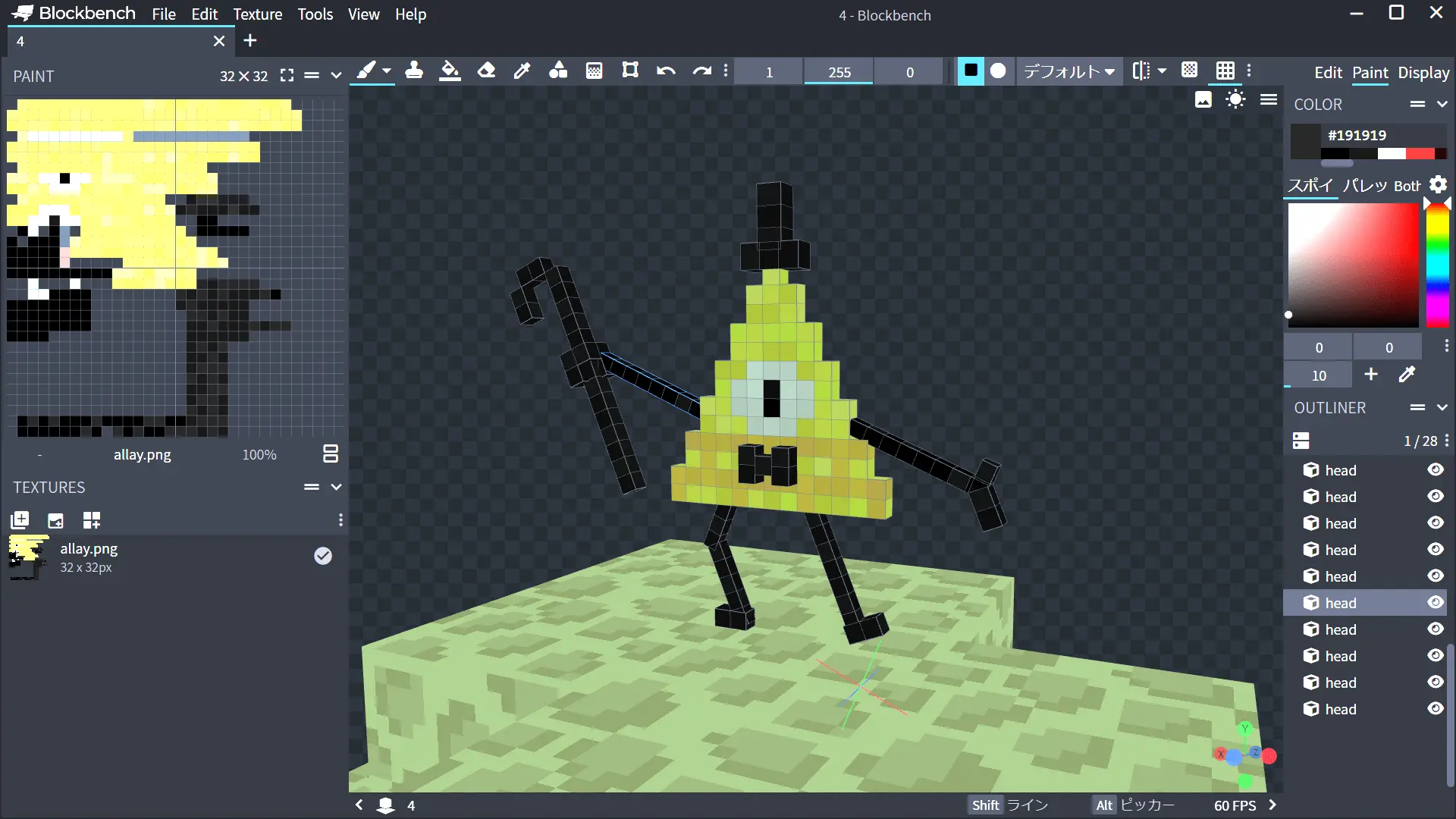 「blockbench」で4種類のポーズで作成しました。